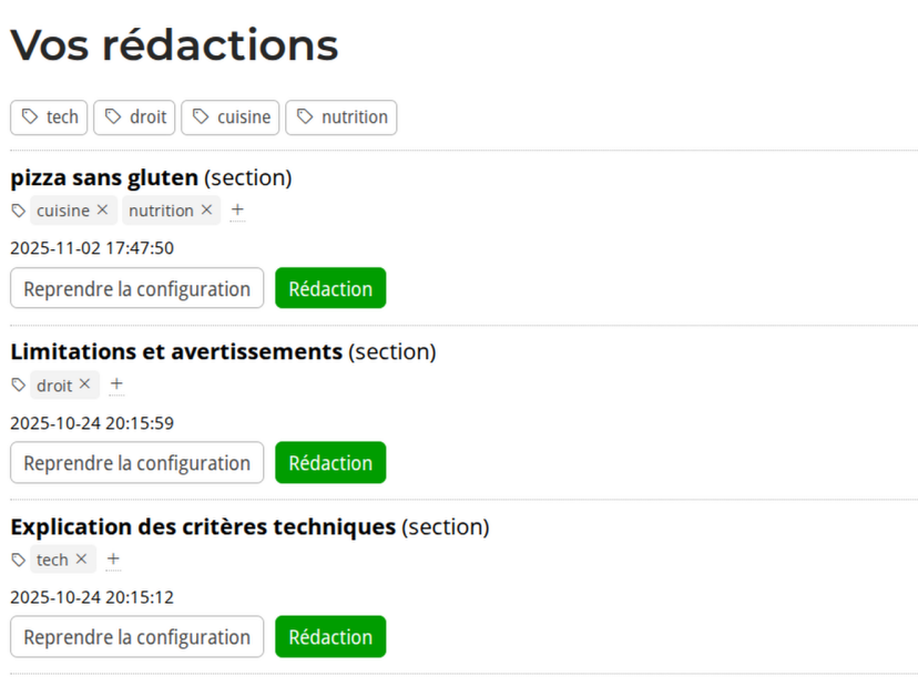 Je profite de cette mise à jour pour pousser en prod la gestion des étiquettes sur le module de rédaction. Ça permet de s’y retrouver facilement lorsqu’on commence à avoir beaucoup de rédactions en stock.